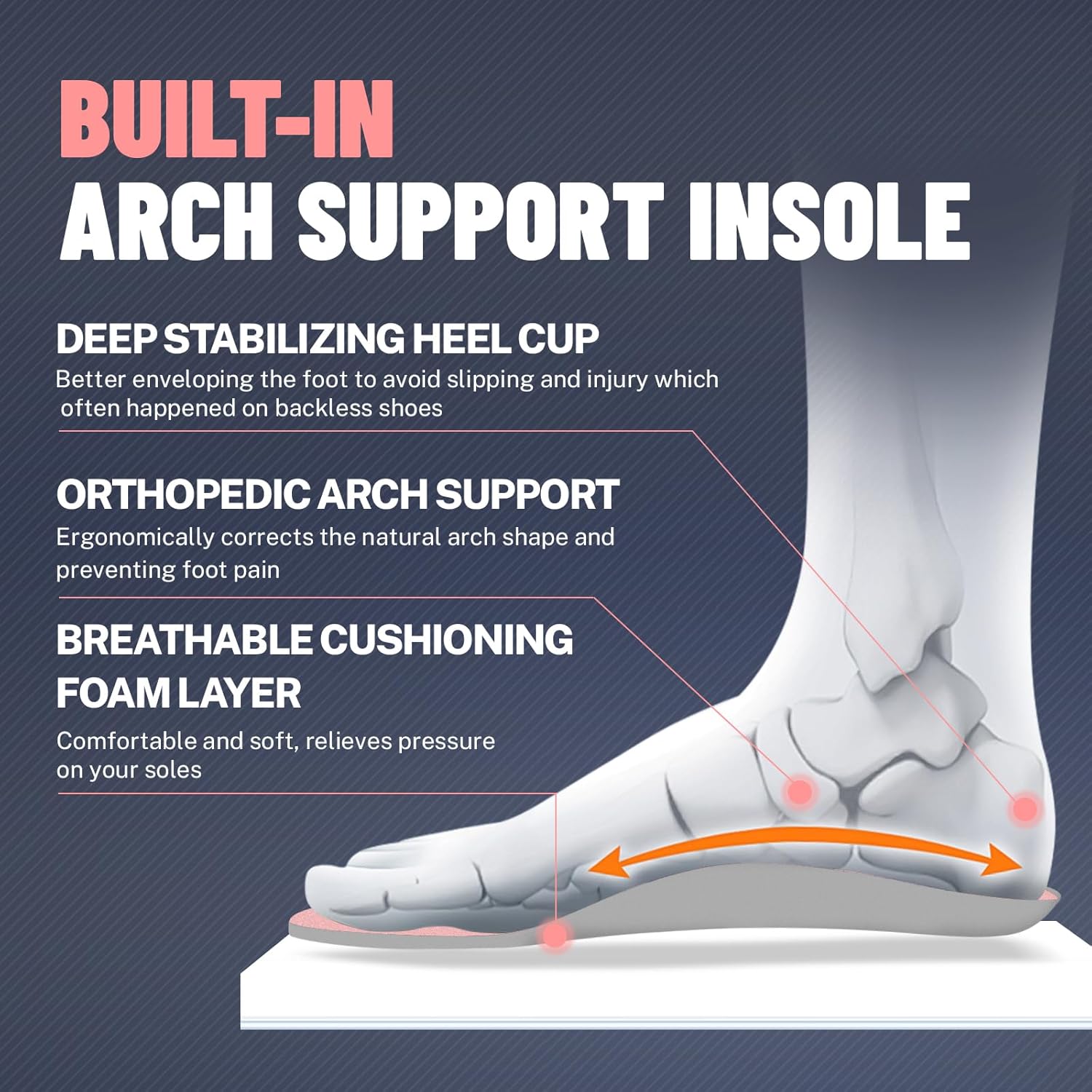 Mules for Woman Sneakers with Arch Support, Slip On Womens Walking Shoes for Plantar Fasciitis, Open Back Orthopedic Clogs for Women