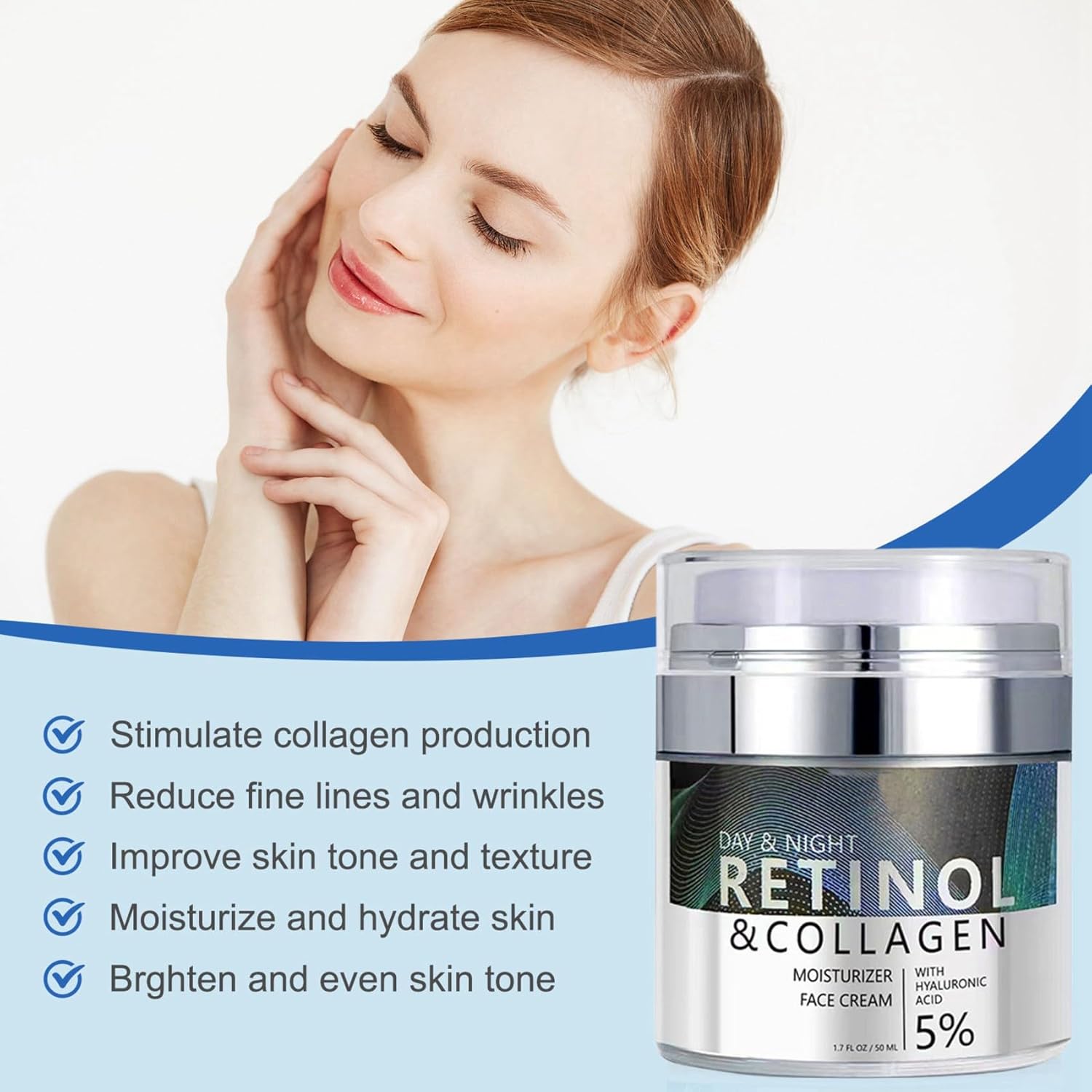 Retinol Cream, Wrinkle Cream Retinol Cream For Face, Anti Aging Moisturizer With Hyaluronic Acid & Collagen, Retinol Face Moisturizer For Firm Skin, Anti-Aging & Fade Wrinkles 50 ml