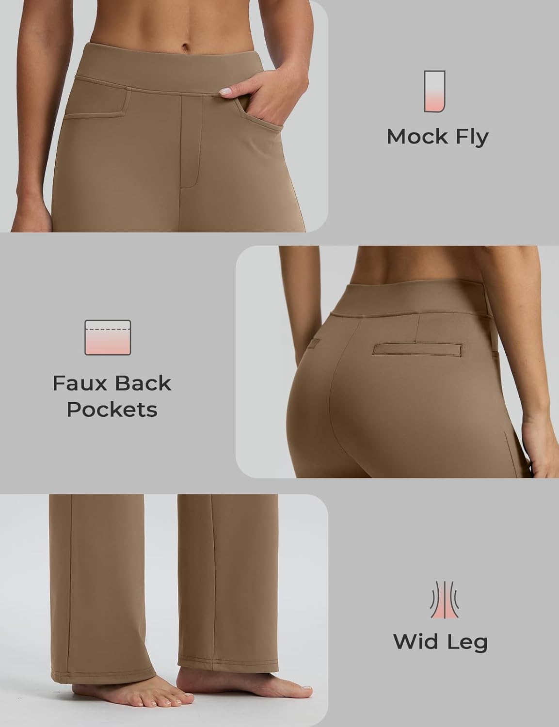 Seamaid Womens 30″ Wide Leg Yoga Pants with Pockets High Waisted Stretch Casual Dress Pants