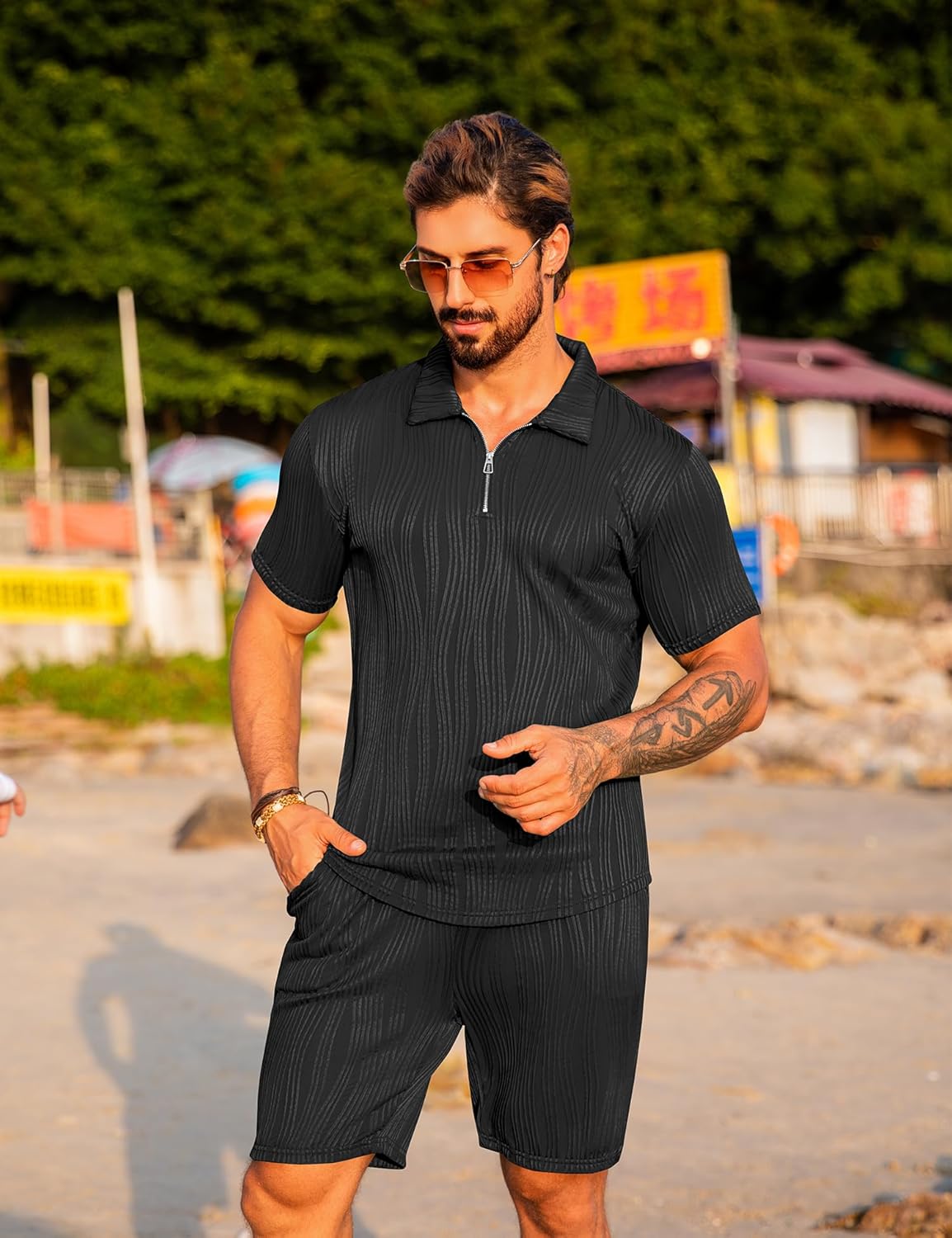 Be the first to review “URRU Men’s 2 Piece Short Set Summer Outfits Fashion Casual Short Sleeve Polo Shirt and Short Set”