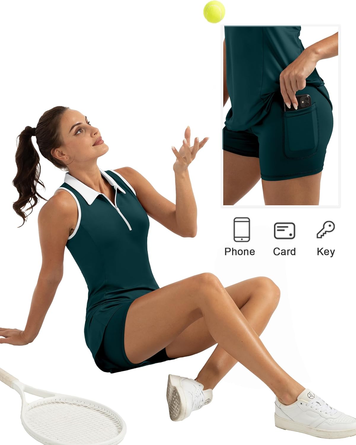 Women’s Golf Tennis Dress Sport Activewear Zipper V-Neck with Shorts and Pocket Workout Athletic