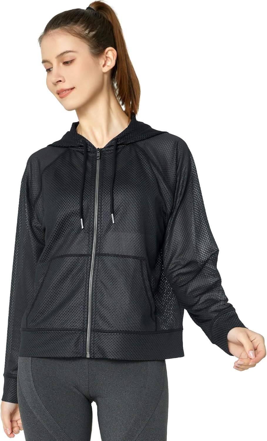 Women’s Long Sleeve Mesh Hoody Sheer Hooded Sweatshirt Lightweight Athletic Jacket Zip Up Sheer Hoodie
